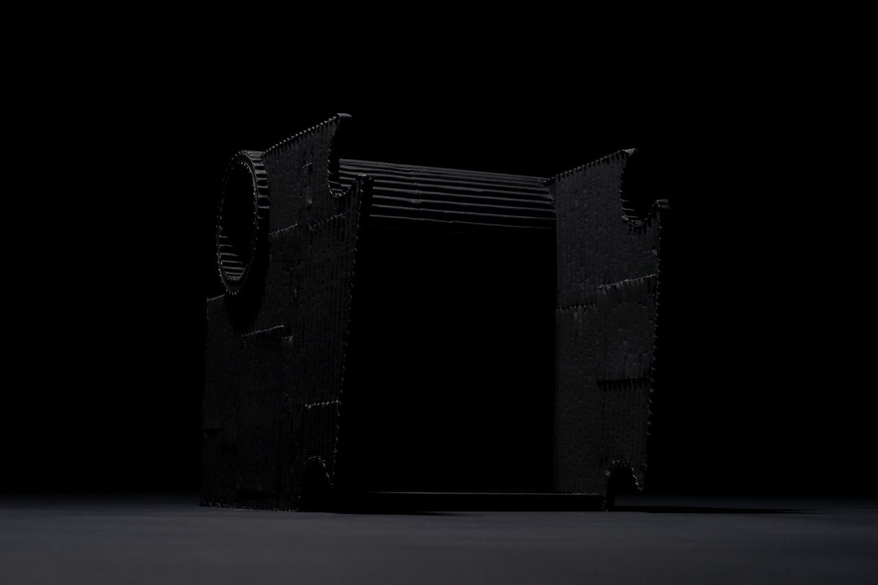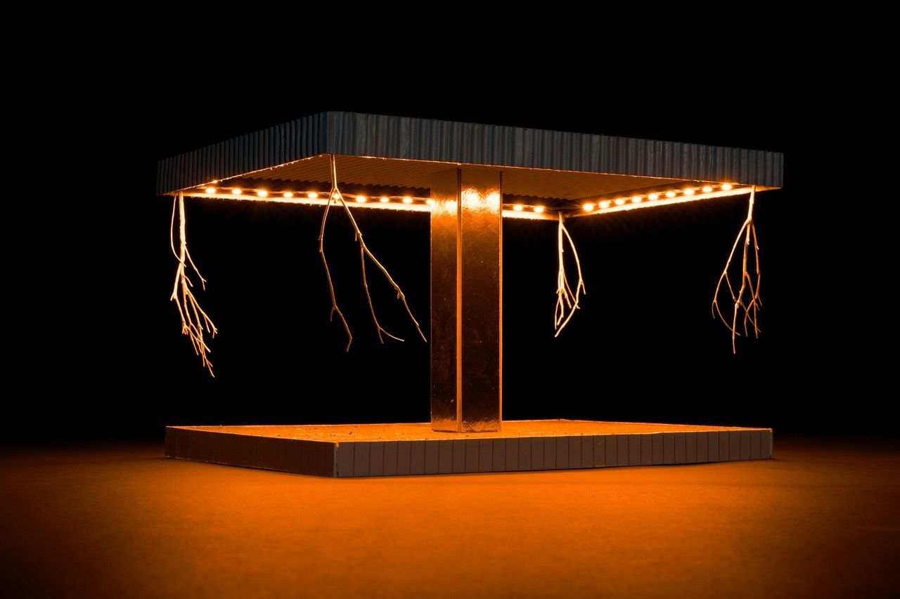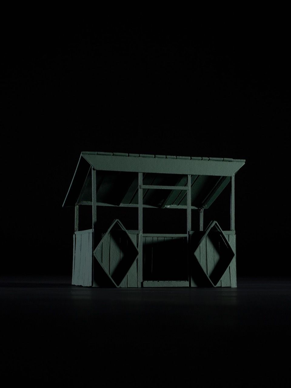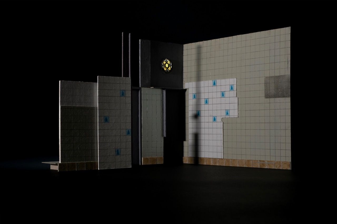 Naast de fotowerken heeft Heidi Linck een situatie gebonden maquette gemaakt van een van de tentoonstellingsruimten van De Halle. Ze reconstrueert de kamer waardoor we zowel de zichtbare binnenzijde als ook een interpretatie van de onzichtbare buitenkant kunnen zien.