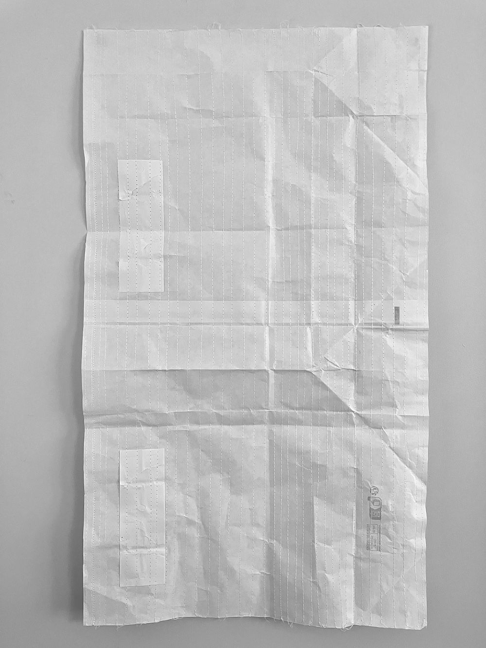 Untitled 24256, 2024, Paper bag, thread, 67 x 39 cm.